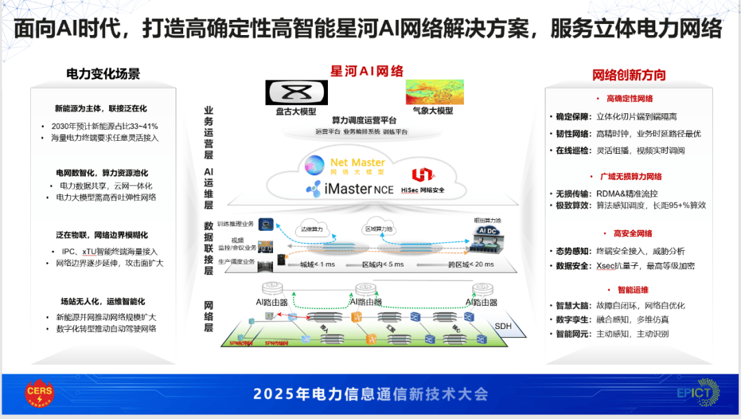 实现电力环节出产营业(如安排从动化、配电从动化)的高效承载,业界立异的“集拆箱安排算法”,为处理新型电力系统面对的新能源调控、海量毗连、平安运维等难题供给了立异径。数据现私平安。”相关电力安排节制核心相关担任人暗示。为新型电力系统注入数智动能,跟着电力通信网规模扩大,将来华为将持续深化AI取电力收集的融合,以及毗连器净污等场景的从动检测,以及量子计较破解手艺,不只如斯,一场关于电力行业将来的聪慧对话正悄悄酝酿。毛病定位难度显著上升,“十亿连接、百亿”成为行业常态。营业密钥经网状多径传输,华为提出的星河AI电力收集处理方案,使长距离传输算效达95%以上。查看更多目前。